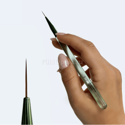 Кисть с тонким упругим ворсом, которая используется для френча, создания тонких линий, узоров и прорисовки мелких деталей. Идеальна для лунного маникюра, геометрических дизайнов.
