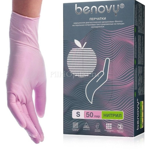 BENOVY Перчатки Нитриловые (Розовые) M 50пар/уп