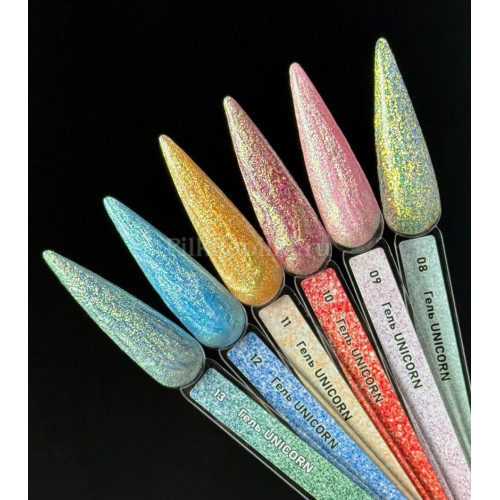 Жесткий гель с невероятными переливами жемчуга, хлопьев и ракушки.