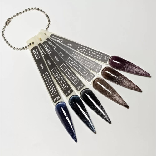 Роскошная коллекция гель-лаков DARK Cat’s eye с эффектом «кошачьего глаза» включает 6 благородных темных тонов, которые придутся по вкусу настоящим ценителям изысканного маникюра. Под воздействием специального магнита мельчайший магнитный шиммер собирается в роскошный блик, делая маникюр завораживающим и глубоким.