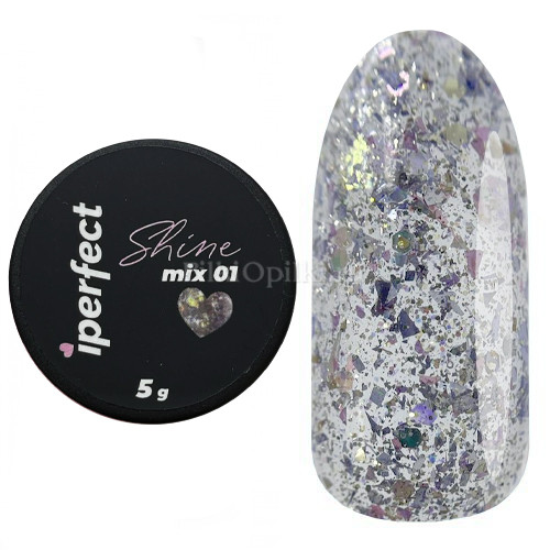-Shine mix 01 серебряные шестигранники и голографические блёстки