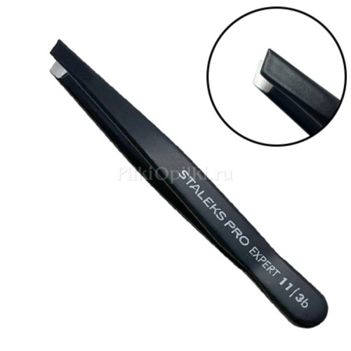 Пинцет Staleks для бровей EXPERT 11 TYPE 3b (широкие скошенные кромки)черный